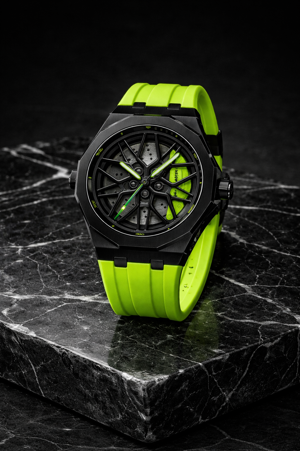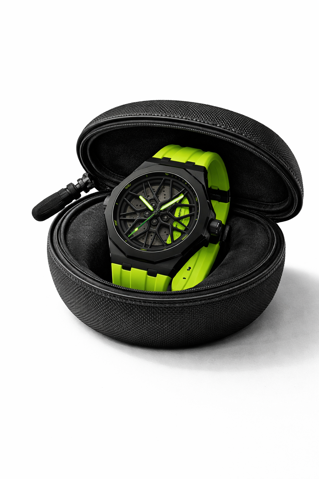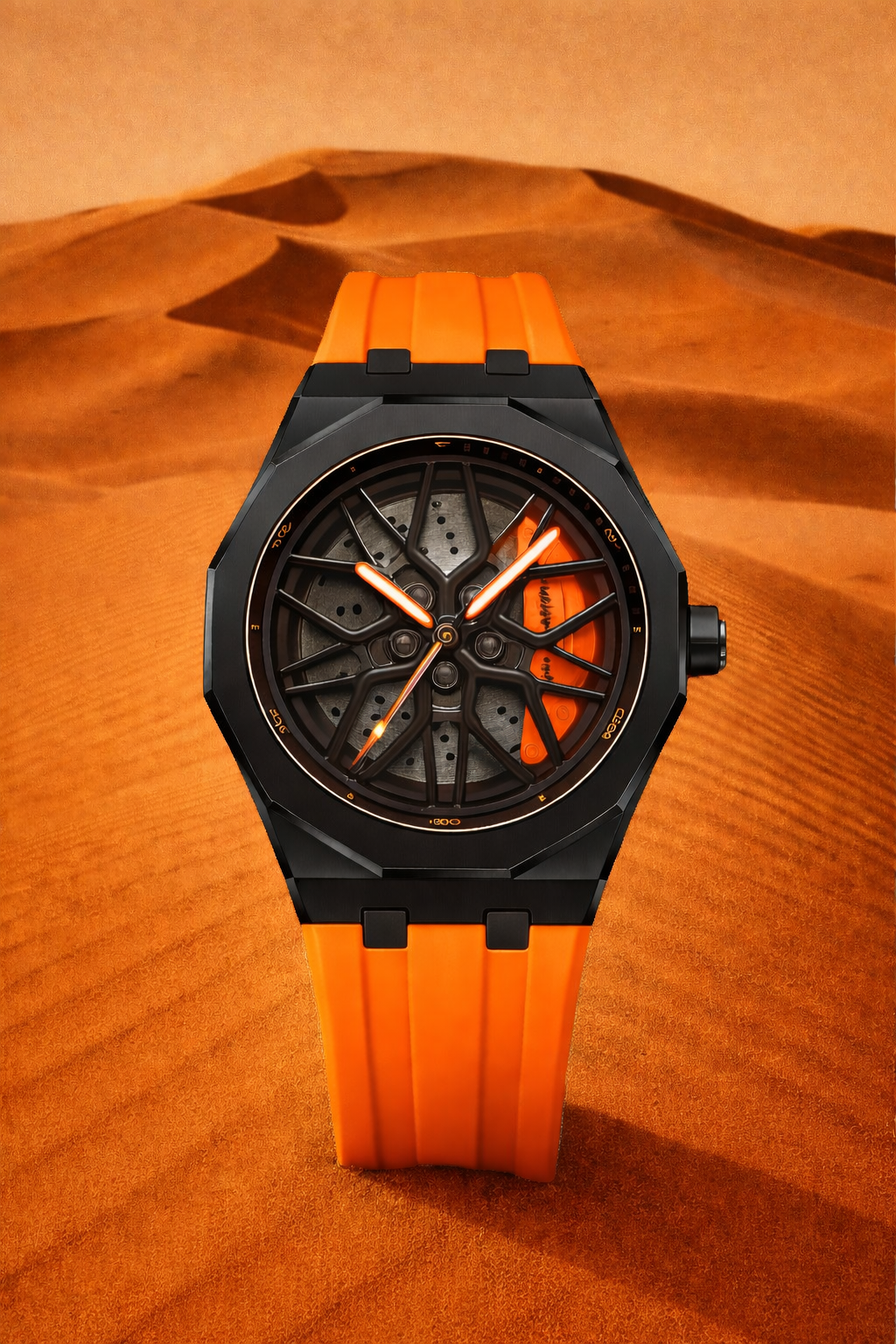 Découvrez notre nouvelle collection de montres sportives au design innovant, inspirée des jantes de véhicules sportifs et de voitures de luxe. Chaque modèle se distingue par un cadran doté d’un concept inédit de handspinner, qui tourne comme une véritable jante en mouvement, offrant une expérience visuelle unique et dynamique.